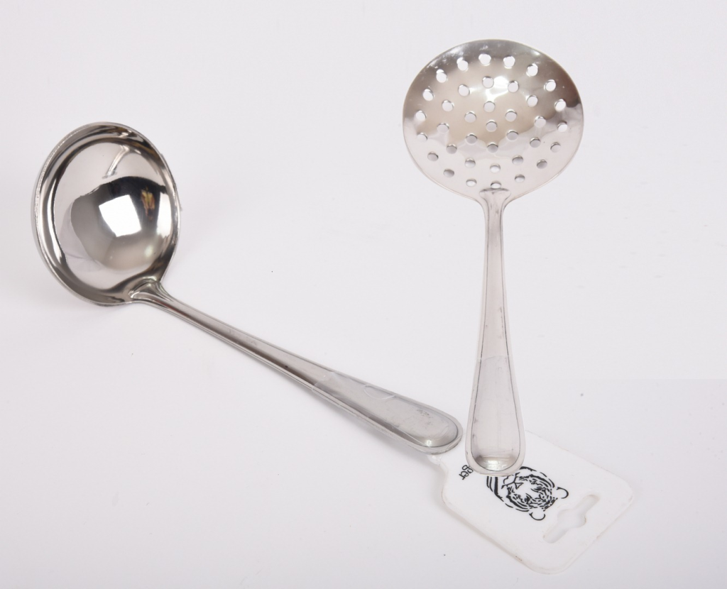 A perforated tool for lifting deep-fried foods and draining them from oil.