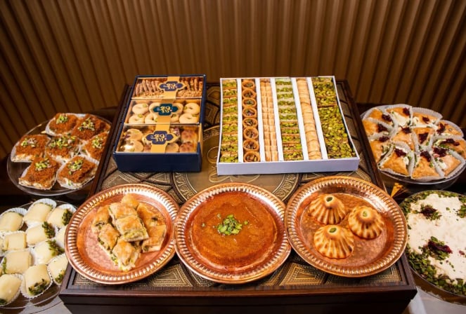 From baklava to maamoul and special Eid selections, everything is carefully prepared and beautifully presented. It’s the perfect place if you want sweets that look elegant on the table and taste just as good.